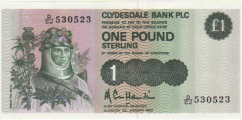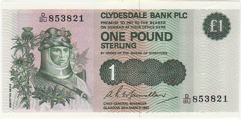 Clydesdale Bank Plc From 1982 1 Pound, 29. 3.1982SC328a1 Pound29. 3.1982
