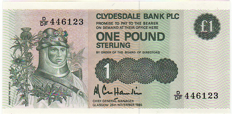 Clydesdale Bank Plc From 1982 1 Pound, 25.11.1985SC328c1 Pound25.11.1985