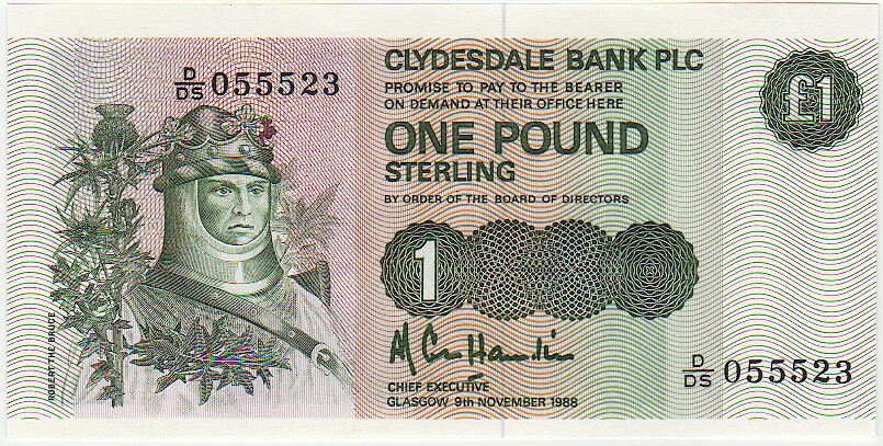Clydesdale Bank Plc From 1982 1 Pound,  9.11.1988SC328d1 Pound 9.11.1988
