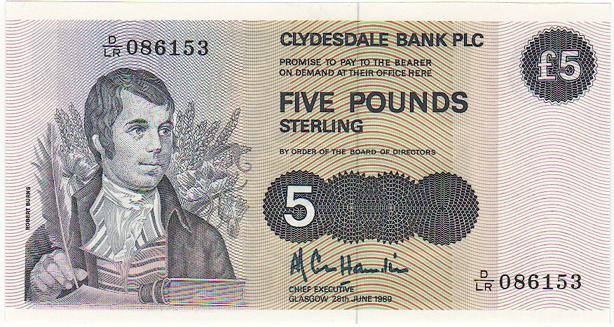 Clydesdale Bank Plc From 1982 5 Pounds, 28. 6.1989SC329d5 Pounds28. 6.1989