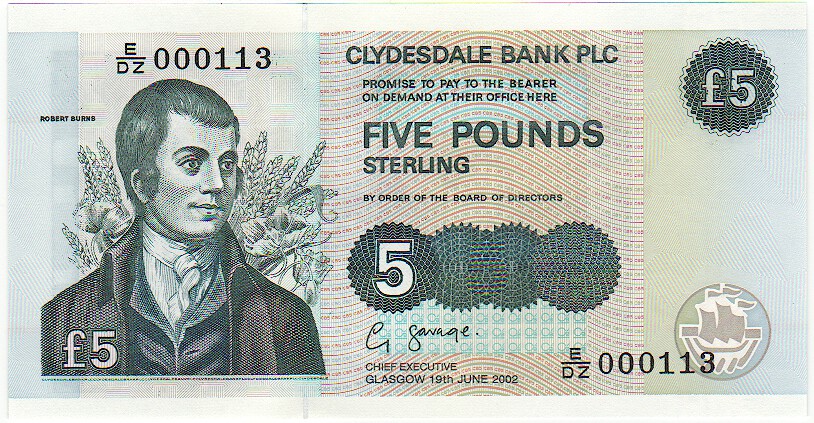 Clydesdale Bank Plc From 1982 5 Pounds, 19. 6.2002SC330d5 Pounds19. 6.2002