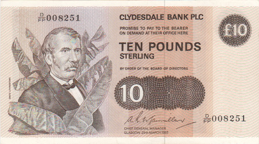 Clydesdale Bank Plc From 1982 10 Pounds, 29. 3.1982SC341a10 Pounds29. 3.1982