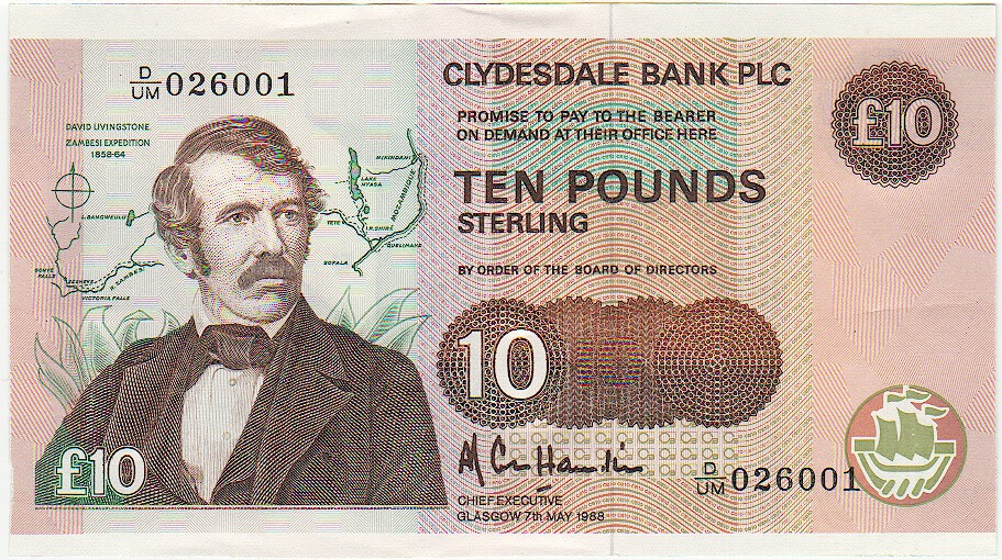 Clydesdale Bank Plc From 1982 10 Pounds,  7. 5.1988SC34210 Pounds 7. 5.1988