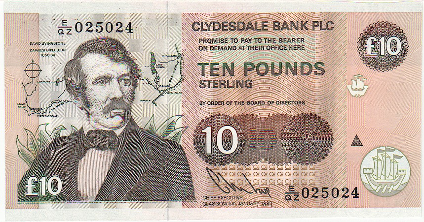 Clydesdale Bank Plc From 1982 10 Pounds,  5. 1.1993SC343b10 Pounds 5. 1.1993