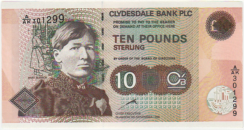 Clydesdale Bank Plc From 1982 10 Pounds, 12.10.1999SC344c10 Pounds12.10.1999