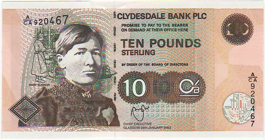 Clydesdale Bank Plc From 1982 10 Pounds, 26. 1.2003SC344d10 Pounds26. 1.2003