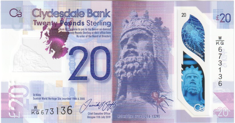 Clydesdale Bank Plc From 1982 20 Pounds, 11. 7.2019SC360B20 Pounds11. 7.2019