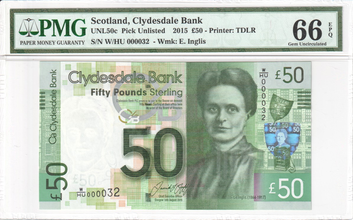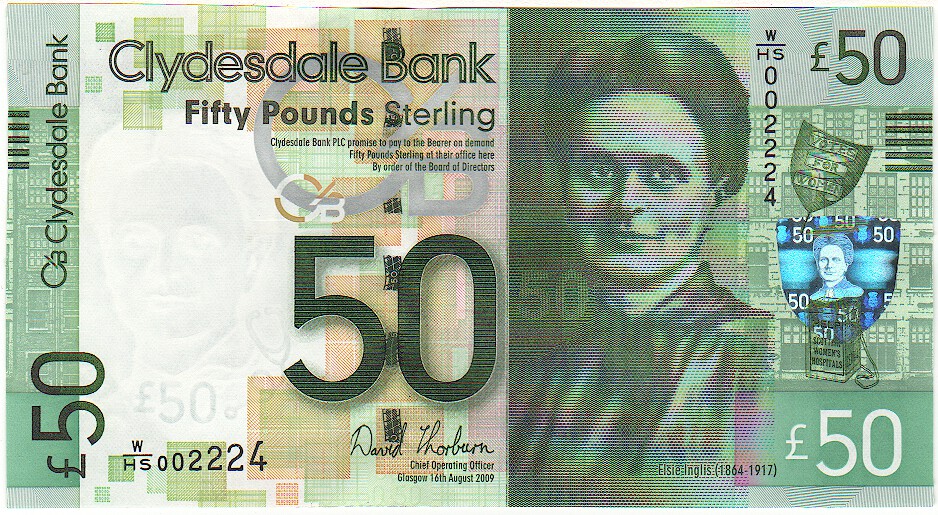 Clydesdale Bank Plc From 1982 50 Pounds, 16. 8.2015SC365b50 Pounds16. 8.2015