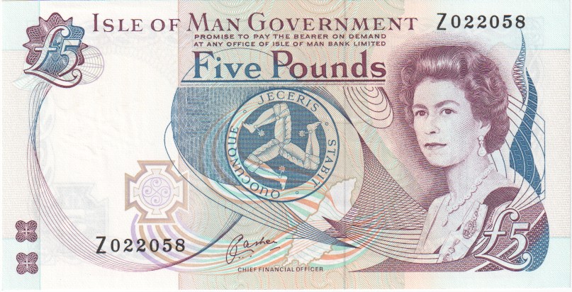 Isle Of Man 5 Pounds, from 1991IM.44b5 Poundsfrom 1991