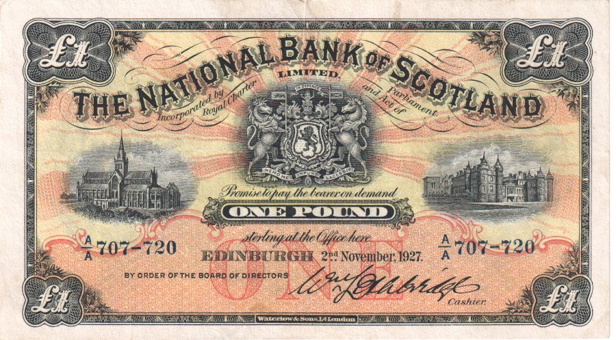 National Bank Of Scotland Ltd 1 Pound,  2.11.1927SC502a1 Pound 2.11.1927