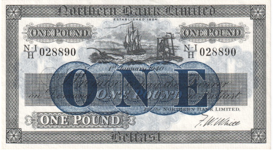Image BYB ref. One Pound notes NI.601b 1 Pound 6. 5.1929Prefix N-I/B VF+ £95.00 NI.601b 1 Pound 1. 8.1929Prefix N-I/F aUNC £250.00 NI.601e 1 Pound 1. 1.1940Prefix N-I/H UNC £125.00 NI.602a 1 Pound 1. 7.1970Prefix C UNC £35.00 NI.602as 1 Pound 1. 7.1970Prefix C0000000 UNC £11.00 Specimen - Training note NI.602a 1 Pound 1.10.1971Prefix C UNC £35.00 NI.602c 1 Pound 1. 8.1978Prefix C UNC £25.00 Five Pound notes NI.613c 5 Pounds 1.11.1943Prefix N-I/T aUNC £220.00 NI.613c 5 Pounds 1.11.1943Prefix N-I/T EF/aUNC £190.00 NI.613c 5 Pounds 1.11.1943Prefix N-I/T EF £160.00 NI.616s 5 Pounds 24.8.1988Prefix A0000000 UNC £140.00 Specimen note NI.617b 5 Pounds 1. 1.2000Prefix Y2K UNC £42.00 NI.617 are polymer notes, the last £5 notes issued by the northern Bank. Ten Pound notes NI.623g 10 Pounds 1.10.1968Prefix N-I/00 UNC £330.00 NI.624a 10 Pounds 1. 7.1970Prefix E F+/VF £55.00 NI.624a 10 Pounds 1. 7.1970Prefix E VF £50.00 Small ink annotation on the front NI.624b 10 Pounds 1.10.1971Prefix E aEF £90.00 NI.624b is a scarce variety with only 100,000 notes printed NI.624c 10 Pounds 1. 1.1975Prefix E UNC £125.00 NI.624c 10 Pounds 1. 1.1976Prefix E UNC £125.00 NI.624d 10 Pounds 1. 4.1982Prefix E aUNC £105.00 NI.624d 10 Pounds 1. 4.1982Prefix E EF £80.00 NI.624e 10 Pounds 2. 3.1987Prefix E aUNC £85.00 NI.624e 10 Pounds 2. 3.1987Prefix E EF £50.00 NI.625as 10 Pounds 24.8.1988Prefix B0000000 UNC £160.00 Specimen note NI.625b 10 Pounds 30.8.1996Prefix B UNC £68.00 Last date NI.626a 10 Pounds 24.2.1997Prefix BA UNC £55.00 NI.629 10 Pounds 9.11.2008Prefix GG UNC £40.00 NI.629 10 Pounds 30.11.2011Prefix GH UNC £40.00 Last prefix NI.629 10 Pounds 9.11.2008Prefix YY UNC £60.00 Replacement note NI.629 10 Pounds 9.11.2008Prefix YY VF+ £28.00 Replacement note Twenty Pound notes NI.632a 20 Pounds 1. 7.1970Prefix F UNC £490.00 NI.633a 20 Pounds 24. 8.1993Prefix C aU/UNC £175.00 NI.633as 20 Pounds 24.8.1989Prefix C0000000 UNC £200.00 Specimen note NI.634a 20 Pounds 24. 2.1997Prefix CA UNC £100.00 First prefix NI.634a 20 Pounds 24. 2.1997Prefix CB VF+ £28.00 Small 2mm tear in the top margin NI.636 20 Pounds 6.11.2006Prefix HH UNC £38.00 NI.636 20 Pounds 6.11.2006Prefix YY EF/aUNC £70.00 Replacement note NI.636 20 Pounds 6.11.2006Prefix YY VF+ £50.00 Replacement note NI.637 20 Pounds 15. 4.2009Prefix HH UNC £38.00 NI.637 20 Pounds 15. 4.2009Prefix YY EF/aUNC £70.00 Replacement note NI.637 20 Pounds 12. 5.2011Prefix HJ UNC £50.00 Last prefix before Danske Bank Fifty Pound notes NI.643c 50 Pounds 1. 3.1981Prefix G VF+ £240.00 One Hundred Pound notes NI.651 100 Pounds 2. 6.1919Prefix No. 5840 EF/aUNC £1,800.00 NI.653a 100 Pounds 1. 7.1970Prefix H VF+ £390.00 NI.656 100 Pounds 19. 1.2005Prefix YY EF £280.00 Replacement note Northern Bank Ltd SPECIMEN SET: NI.Specimen set 5,10, 20, 50, &100 1988, 1989, 1990Prefix A, B, C, D, E. UNC £960.00 NI.616s, NI.625as, NI.633as, NI.644s & NI.654S.