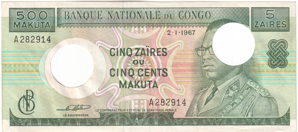 Congo Democratic Republic 5 Zaires,  2. 1.1967135 Zaires 2. 1.1967aUNC£45.00Cancellation holes