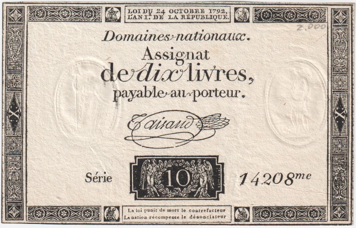 France 1 10 Livres, 1792A66b10 Livres1792UNC£25.00