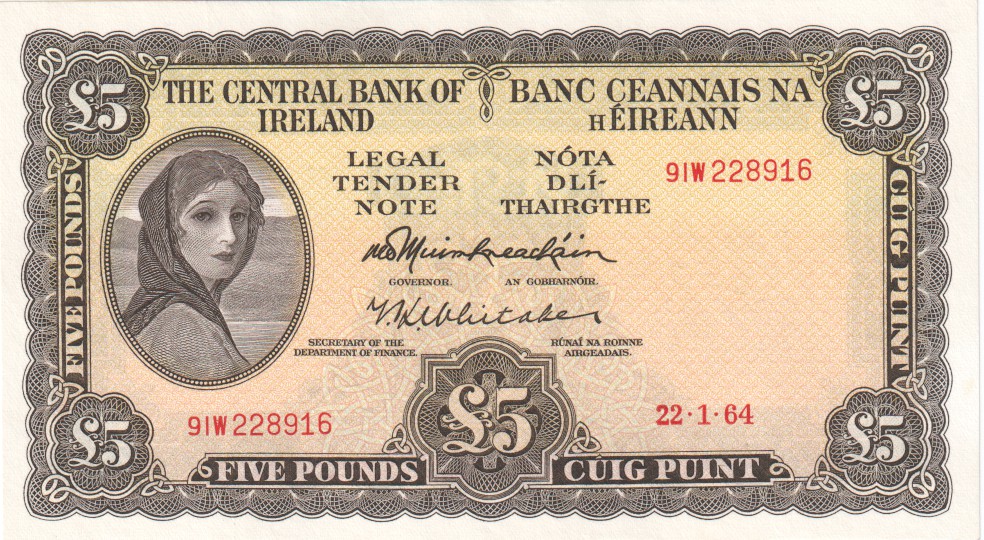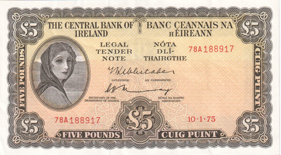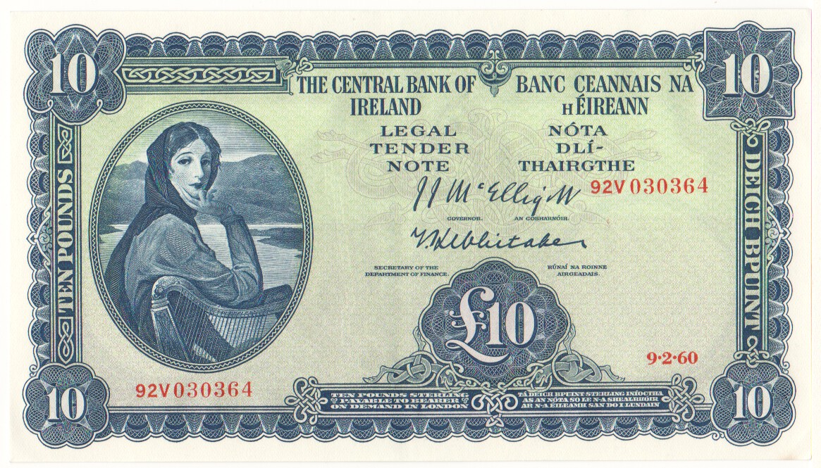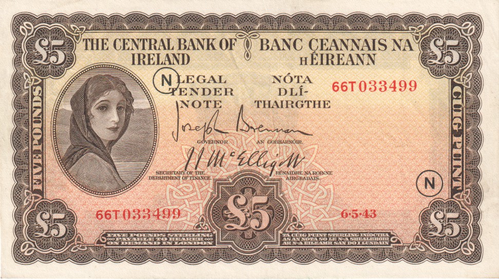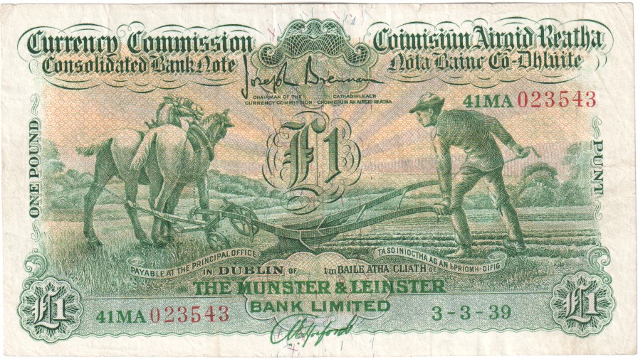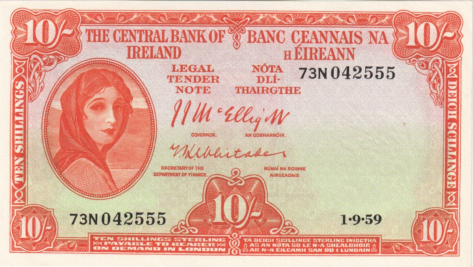 image Ref Description Date Grade Price Other Information Currency Commission - Consolidated Bank Notes (Ploughman notes) E017 1 Pound Prefix 41MA, 3.3.1939 VF/VF+ £680.00 The Munster & Leinster Bank Currency Commission Irish Free State E076 1 Pound Prefix 42J, 26.3.1934 VF+ £320.00 2 pin holes on note E076 1 Pound Prefix 67J, 7.8.1935 VF/VF+ £340.00 E076 1 Pound Prefix 73J, 5.9.1935 VF £320.00 E076 1 Pound Prefix 77J, 5.9.1935 VF £320.00 E076 1 Pound Prefix 04K, 12.3.1937 VF+ £320.00 2 pin holes on note E076 1 Pound Prefix 17K, 14.5.1937 F+/VF £200.00 E089 5 Pounds Prefix 15T, 7.6.1932 VF/VF+ £650.00 Scarce date Currency Commission Ireland E068 10 Shillings Prefix 21F, 22.8.1940 VF £170.00 War code blue H in a circle E068 10 Shillings Prefix 50F, 11.9.1940 aEF £295.00 War code blue H in a circle E068 10 Shillings Prefix 65F, 5.12.1940 aEF £235.00 War code green K in circle, 2cm tear on top edge E090 5 Pounds Prefix 30T, 5.7.1938 F+ £145.00 E090 5 Pounds Prefix 31T, 4.8.1938 F £120.00 E090 5 Pounds Prefix 42T, 2.10.1939 VF £220.00 E090 5 Pounds Prefix 42T, 2.10.1939 F+/VF £190.00 E091 5 Pounds Prefix 45T, 23.9.1940 VF/VF+ £280.00 War code green A in a circle, one pair of staple holes E091 5 Pounds Prefix 50T, 9.6.1941 VF £260.00 War code purple C in a circle, one pair of staple holes E091 5 Pounds Prefix 53T, 1.9.1941 F+/VF £185.00 War code purple C in a circle E091 5 Pounds Prefix 59T, 5.6.1942 VF £275.00 War code blue D in a circle E091 5 Pounds Prefix 61T, 1.8.1942 VF/VF+ £300.00 War code blue D in a circle E091 5 Pounds Prefix 62T, 3.9.1942 VF+ £320.00 War code blue D in a circle E102 10 Pounds Prefix 10V, 29.6.1940 VF £320.00 Ink annotation '500' on reverse of note. E103 10 Pounds Prefix 11V, 9.10.1941 VF £360.00 War code brown E in a circle The Central Bank of Ireland E070 10 Shillings Prefix 02J, 29.8.1946 VF+ £90.00 E070 10 Shillings Prefix 29L, 19.9.1949 aUNC £140.00 E071 10 Shillings Prefix 31N, 22.10.1952 VF+ £60.00 E073 10 Shillings Prefix 73N, 1.9.1959 UNC £180.00 E074 10 Shillings Prefix 65P, 25.5.1966 aUNC £55.00 E074 10 Shillings Prefix 87P, 6.6.1968 UNC £70.00 E074 10 Shillings Prefix 87P, 6.6.1968 aUNC £55.00 E074 10 Shillings Prefix 89P 998 - -,6.6.1968 UNC £85.00 89P is the last prefix for Irish 10 Shilling notes E074 10 Shillings Prefix 89P, 6.6.1968 aUNC £75.00 89P is the last prefix for Irish 10 Shilling notes E079 1 Pound Prefix 85N, 18.11.1944 VF £150.00 War code pink F in a circle E080 1 Pound Prefix 58A, 18.6.1949 EF £75.00 E080 1 Pound Prefix 11D, 2.12.1950 EF/aUNC £75.00 E081 1 Pound Prefix 01E, 11.9.1951 EF/aUNC £75.00 E081 1 Pound Prefix 42E, 26.8.1952 EF £65.00 E082 1 Pound Prefix 81E, 25.10.1955 aUNC £160.00 E092 5 Pounds Prefix 66T, 6.5.1943 aEF £360.00 War code black N in a circle E092 5 Pounds Prefix 67T, 7.6.1943 F+ £185.00 War code black N in a circle. One pair of staple holes on note E092 5 Pounds Prefix 69T, 7.9.1943 VF+ £320.00 War code red R in a circle E092 5 Pounds Prefix 74T, 2.3.1944 VF £280.00 War code brown M in a circle E093 5 Pounds Prefix 84T, 16.8.1945 VF+/aEF £130.00 E093 5 Pounds Prefix 01W, 29.9.1947 aUNC £200.00 E093 5 Pounds Prefix 02W, 27.10.1947 aUNC £200.00 E093 5 Pounds Prefix 02W, 27.10.1947 VF+ £115.00 E093 5 Pounds Prefix 14W, 7.12.1948 VF £80.00 E093 5 Pounds Prefix 47W, 22.12.1950 EF £170.00 E093 5 Pounds Prefix 54W, 17.2.1951 aUNC £210.00 E094 5 Pounds Prefix 63W, 20.1.1953 aEF £75.00 E095 5 Pounds Prefix 66W, 3.5.1954 aEF £125.00 E095 5 Pounds Prefix 67W, 3.5.1954 aEF £125.00 E095 5 Pounds Prefix 68W, 24.10.1955 EF £145.00 E096 5 Pounds Prefix 74W, 21.10.1958 aUNC £160.00 E096 5 Pounds Prefix 74W, 21.10.1958 VF+ £75.00 E096 5 Pounds Prefix 77W, 12.5.1960 VF £50.00 E096 5 Pounds Prefix 79W, 12.5.1960 VF/VF+ £62.00 E097 5 Pounds Prefix 91W, 22.1.1964 aUNC £115.00 E097 5 Pounds Prefix 06A, 31.3.1966 VF+ £70.00 E097 5 Pounds Prefix 10A, 12.8.1968 EF/aUNC £100.00 E099 5 Pounds Prefix 38A, 18.1.1971 aUNC £160.00 E099 5 Pounds Prefix 78A, 10.1.1975 UNC £180.00 E099 5 Pounds Prefix 78A, 10.1.1975 aUNC £160.00 E099 5 Pounds Prefix 88A, 10.1.1975 UNC £180.00 E099 5 Pounds Prefix 01B, 5.9.1975 VF+ £70.00 E099 5 Pounds Prefix 04B, 5.9.1975 UNC £220.00 04B last prefix E104 10 Pounds Prefix 23V, 3.2.1944 VF £360.00 War code purple B in circle E105 10 Pounds Prefix 42V, 14.9.1949 aEF £320.00 E105 10 Pounds Prefix 50V, 17.10.1950 EF/aUNC £360.00 E105 10 Pounds Prefix 61V, 1.10.1951 VF+ £145.00 E106 10 Pounds Prefix 77V, 28.6.1955 VF+ £220.00 E107 10 Pounds Prefix 91V, 21.11.1957 aUNC £275.00 E108 10 Pounds Prefix 92V, 9.2.1960 aUNC £275.00 E108 10 Pounds Prefix 92V, 5.3.1960 EF/aUNC £240.00 E108 10 Pounds Prefix 92V, 27.8.1960 aUNC £275.00 E108 10 Pounds Prefix 93V, 6.12.1960 aUNC £275.00 E109 10 Pounds Prefix 95V, 23.1.1964 VF+ £95.00 E109 10 Pounds Prefix 97V, 30.4.1965 aEF £120.00 E110 10 Pounds Prefix 04D, 9.3.1970 VF+ £75.00 5mm tear on top edge of note E111 10 Pounds Prefix 17D, 26.9.1974 EF/aUNC £150.00 E111 10 Pounds Prefix 29D, 10.2.1975 aU/UNC £180.00 E111 10 Pounds Prefix 33D, 10.2.1975 EF £120.00 E112 10 Pounds Prefix 49D, 2.12.1976 EF £120.00 E112 10 Pounds Prefix 49D, 2.12.1976 aEF £95.00 E119 20 Pounds Prefix 41X, 14.3.1973 aU/UNC £380.00 E119 20 Pounds Prefix 54X, 6.1.1975 UNC £535.00 E120 20 Pounds Prefix 70X, 24.3.1976 aU/UNC £395.00 E136 1 Pound Prefix CCB, 11.10.1977 UNC £25.00 E136 1 Pound Prefix JKB, 17.11.1977 VF+ £8.00 E137 1 Pound Prefix DBB, 26.9.1978 aUNC £15.00 E139 1 Pound Prefix LAK, 17.7.1989 UNC £15.00 E145 10 Pounds Prefix GJC, 1.6.1978 aUNC £110.00 E145 10 Pounds Prefix GKC, 2.2.1981 UNC £150.00