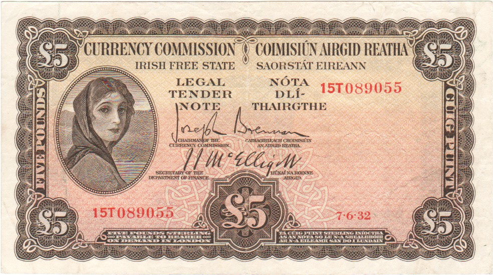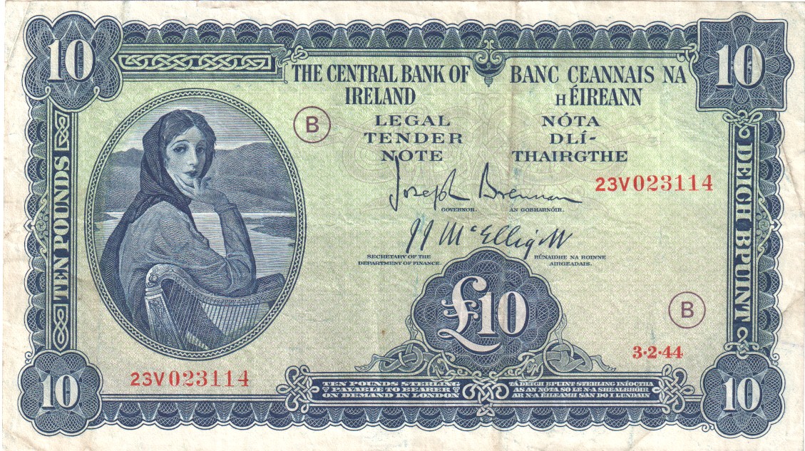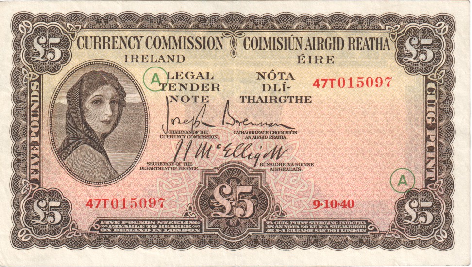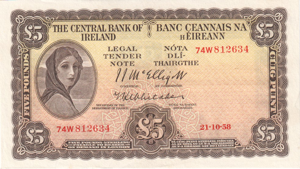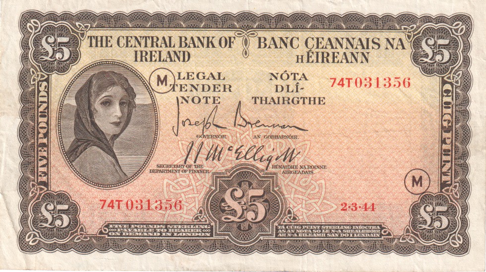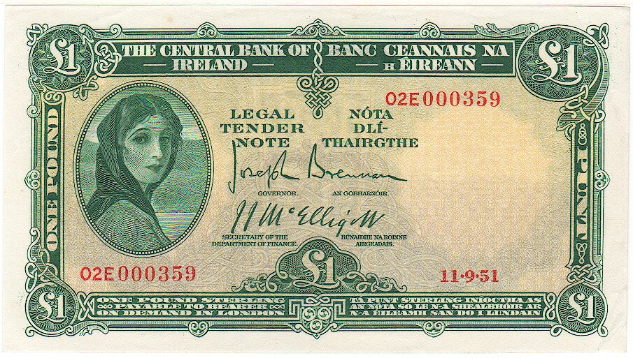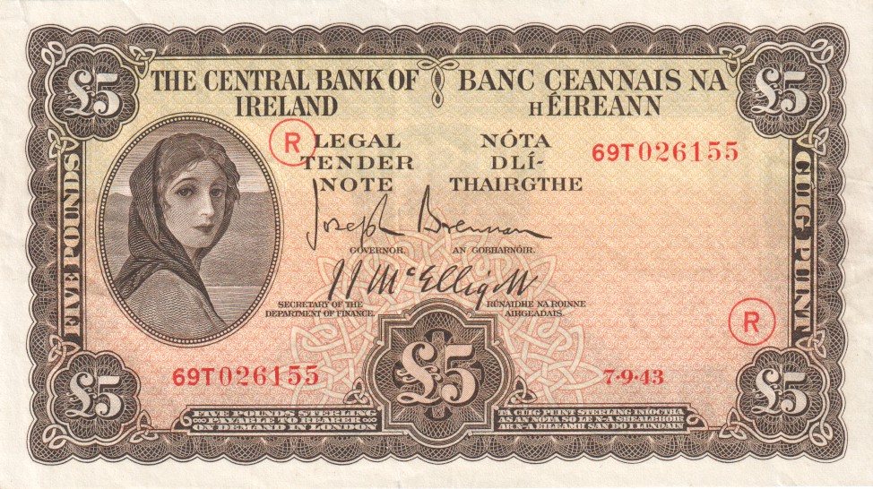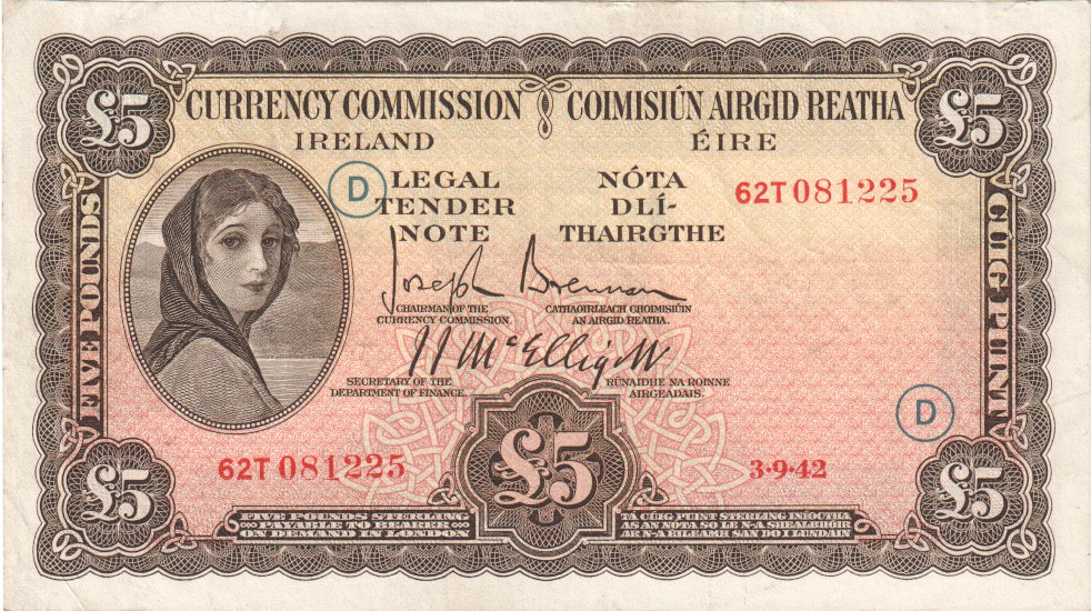 image Ref Description Date Grade Price Other Information Currency Commission - Consolidated Bank Notes (Ploughman notes) E017 1 Pound Prefix 41MA, 3.3.1939 VF/VF+ £680.00 The Munster & Leinster Bank Currency Commission Irish Free State E076 1 Pound Prefix 42J, 26.3.1934 VF+ £320.00 2 pin holes on note E076 1 Pound Prefix 67J, 7.8.1935 VF/VF+ £340.00 E076 1 Pound Prefix 73J, 5.9.1935 VF £320.00 E076 1 Pound Prefix 77J, 5.9.1935 VF £320.00 E076 1 Pound Prefix 04K, 12.3.1937 VF+ £320.00 2 pin holes on note E076 1 Pound Prefix 17K, 14.5.1937 F+/VF £200.00 E089 5 Pounds Prefix 15T, 7.6.1932 VF/VF+ £650.00 Scarce date Currency Commission Ireland E068 10 Shillings Prefix 21F, 22.8.1940 VF £170.00 War code blue H in a circle E068 10 Shillings Prefix 50F, 11.9.1940 aEF £295.00 War code blue H in a circle E068 10 Shillings Prefix 65F, 5.12.1940 aEF £235.00 War code green K in circle, 2cm tear on top edge E090 5 Pounds Prefix 30T, 5.7.1938 F+ £145.00 E090 5 Pounds Prefix 31T, 4.8.1938 F £120.00 E090 5 Pounds Prefix 42T, 2.10.1939 VF £220.00 E090 5 Pounds Prefix 42T, 2.10.1939 F+/VF £190.00 E091 5 Pounds Prefix 45T, 23.9.1940 VF/VF+ £280.00 War code green A in a circle, one pair of staple holes E091 5 Pounds Prefix 50T, 9.6.1941 VF £260.00 War code purple C in a circle, one pair of staple holes E091 5 Pounds Prefix 53T, 1.9.1941 F+/VF £185.00 War code purple C in a circle E091 5 Pounds Prefix 59T, 5.6.1942 VF £275.00 War code blue D in a circle E091 5 Pounds Prefix 61T, 1.8.1942 VF/VF+ £300.00 War code blue D in a circle E091 5 Pounds Prefix 62T, 3.9.1942 VF+ £320.00 War code blue D in a circle E102 10 Pounds Prefix 10V, 29.6.1940 VF £320.00 Ink annotation '500' on reverse of note. E103 10 Pounds Prefix 11V, 9.10.1941 VF £360.00 War code brown E in a circle The Central Bank of Ireland E070 10 Shillings Prefix 02J, 29.8.1946 VF+ £90.00 E070 10 Shillings Prefix 29L, 19.9.1949 aUNC £140.00 E071 10 Shillings Prefix 31N, 22.10.1952 VF+ £60.00 E073 10 Shillings Prefix 73N, 1.9.1959 UNC £180.00 E074 10 Shillings Prefix 65P, 25.5.1966 aUNC £55.00 E074 10 Shillings Prefix 87P, 6.6.1968 UNC £70.00 E074 10 Shillings Prefix 87P, 6.6.1968 aUNC £55.00 E074 10 Shillings Prefix 89P 998 - -,6.6.1968 UNC £85.00 89P is the last prefix for Irish 10 Shilling notes E074 10 Shillings Prefix 89P, 6.6.1968 aUNC £75.00 89P is the last prefix for Irish 10 Shilling notes E079 1 Pound Prefix 85N, 18.11.1944 VF £150.00 War code pink F in a circle E080 1 Pound Prefix 58A, 18.6.1949 EF £75.00 E080 1 Pound Prefix 11D, 2.12.1950 EF/aUNC £75.00 E081 1 Pound Prefix 01E, 11.9.1951 EF/aUNC £75.00 E081 1 Pound Prefix 42E, 26.8.1952 EF £65.00 E082 1 Pound Prefix 81E, 25.10.1955 aUNC £160.00 E092 5 Pounds Prefix 66T, 6.5.1943 aEF £360.00 War code black N in a circle E092 5 Pounds Prefix 67T, 7.6.1943 F+ £185.00 War code black N in a circle. One pair of staple holes on note E092 5 Pounds Prefix 69T, 7.9.1943 VF+ £320.00 War code red R in a circle E092 5 Pounds Prefix 74T, 2.3.1944 VF £280.00 War code brown M in a circle E093 5 Pounds Prefix 84T, 16.8.1945 VF+/aEF £130.00 E093 5 Pounds Prefix 01W, 29.9.1947 aUNC £200.00 E093 5 Pounds Prefix 02W, 27.10.1947 aUNC £200.00 E093 5 Pounds Prefix 02W, 27.10.1947 VF+ £115.00 E093 5 Pounds Prefix 14W, 7.12.1948 VF £80.00 E093 5 Pounds Prefix 47W, 22.12.1950 EF £170.00 E093 5 Pounds Prefix 54W, 17.2.1951 aUNC £210.00 E094 5 Pounds Prefix 63W, 20.1.1953 aEF £75.00 E095 5 Pounds Prefix 66W, 3.5.1954 aEF £125.00 E095 5 Pounds Prefix 67W, 3.5.1954 aEF £125.00 E095 5 Pounds Prefix 68W, 24.10.1955 EF £145.00 E096 5 Pounds Prefix 74W, 21.10.1958 aUNC £160.00 E096 5 Pounds Prefix 74W, 21.10.1958 VF+ £75.00 E096 5 Pounds Prefix 77W, 12.5.1960 VF £50.00 E096 5 Pounds Prefix 79W, 12.5.1960 VF/VF+ £62.00 E097 5 Pounds Prefix 91W, 22.1.1964 aUNC £115.00 E097 5 Pounds Prefix 06A, 31.3.1966 VF+ £70.00 E097 5 Pounds Prefix 10A, 12.8.1968 EF/aUNC £100.00 E099 5 Pounds Prefix 38A, 18.1.1971 aUNC £160.00 E099 5 Pounds Prefix 78A, 10.1.1975 UNC £180.00 E099 5 Pounds Prefix 78A, 10.1.1975 aUNC £160.00 E099 5 Pounds Prefix 88A, 10.1.1975 UNC £180.00 E099 5 Pounds Prefix 01B, 5.9.1975 VF+ £70.00 E099 5 Pounds Prefix 04B, 5.9.1975 UNC £220.00 04B last prefix E104 10 Pounds Prefix 23V, 3.2.1944 VF £360.00 War code purple B in circle E105 10 Pounds Prefix 42V, 14.9.1949 aEF £320.00 E105 10 Pounds Prefix 50V, 17.10.1950 EF/aUNC £360.00 E105 10 Pounds Prefix 61V, 1.10.1951 VF+ £145.00 E106 10 Pounds Prefix 77V, 28.6.1955 VF+ £220.00 E107 10 Pounds Prefix 91V, 21.11.1957 aUNC £275.00 E108 10 Pounds Prefix 92V, 9.2.1960 aUNC £275.00 E108 10 Pounds Prefix 92V, 5.3.1960 EF/aUNC £240.00 E108 10 Pounds Prefix 92V, 27.8.1960 aUNC £275.00 E108 10 Pounds Prefix 93V, 6.12.1960 aUNC £275.00 E109 10 Pounds Prefix 95V, 23.1.1964 VF+ £95.00 E109 10 Pounds Prefix 97V, 30.4.1965 aEF £120.00 E110 10 Pounds Prefix 04D, 9.3.1970 VF+ £75.00 5mm tear on top edge of note E111 10 Pounds Prefix 17D, 26.9.1974 EF/aUNC £150.00 E111 10 Pounds Prefix 29D, 10.2.1975 aU/UNC £180.00 E111 10 Pounds Prefix 33D, 10.2.1975 EF £120.00 E112 10 Pounds Prefix 49D, 2.12.1976 EF £120.00 E112 10 Pounds Prefix 49D, 2.12.1976 aEF £95.00 E119 20 Pounds Prefix 41X, 14.3.1973 aU/UNC £380.00 E119 20 Pounds Prefix 54X, 6.1.1975 UNC £535.00 E120 20 Pounds Prefix 70X, 24.3.1976 aU/UNC £395.00 E136 1 Pound Prefix CCB, 11.10.1977 UNC £25.00 E136 1 Pound Prefix JKB, 17.11.1977 VF+ £8.00 E137 1 Pound Prefix DBB, 26.9.1978 aUNC £15.00 E139 1 Pound Prefix LAK, 17.7.1989 UNC £15.00 E145 10 Pounds Prefix GJC, 1.6.1978 aUNC £110.00 E145 10 Pounds Prefix GKC, 2.2.1981 UNC £150.00
