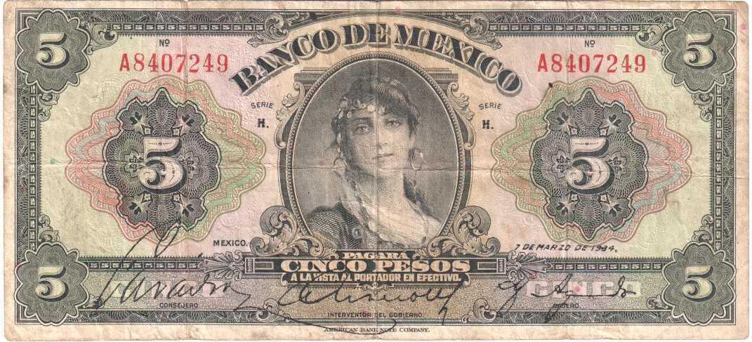Mexico 5 Pesos,  7. 3.193421b5 Pesos 7. 3.1934Fine£48.00