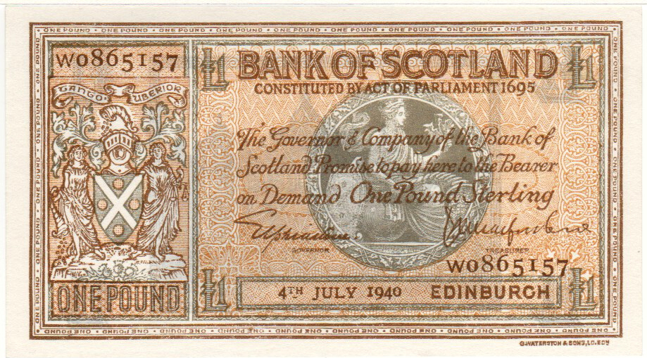 Bank Of Scotland 1 Pound Notes 1 Pound, 15. 2.1940SC103b1 Pound15. 2.1940