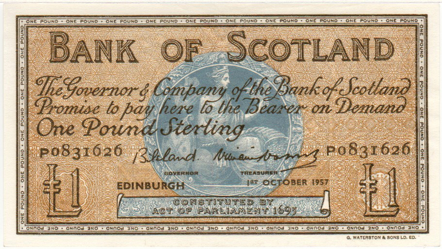 Bank Of Scotland 1 Pound Notes 1 Pound,  9.11.1953SC105b1 Pound 9.11.1953