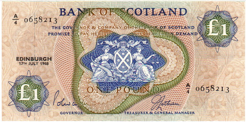 Bank Of Scotland 1 Pound Notes 1 Pound, 17. 7.1968SC1081 Pound17. 7.1968