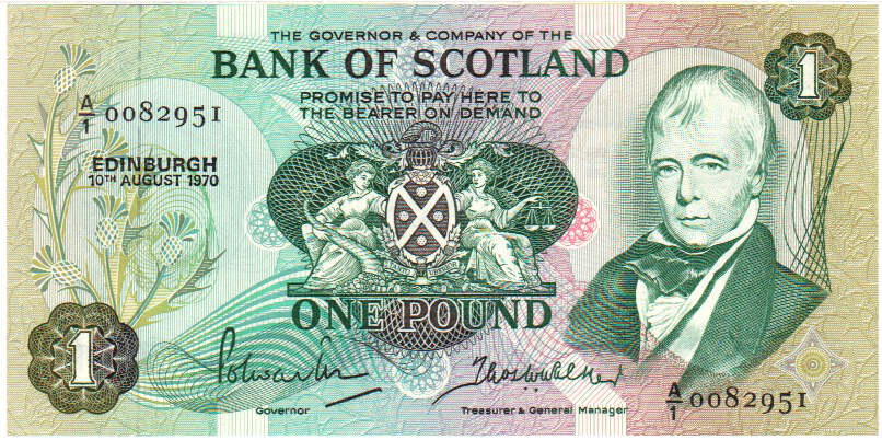 Bank Of Scotland 1 Pound Notes 1 Pound, 10. 8.1970SC109a1 Pound10. 8.1970