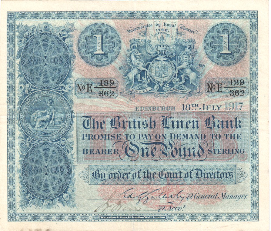 British Linen Bank 1 Pound, 18. 7.1917SC202a 1 Pound18. 7.1917