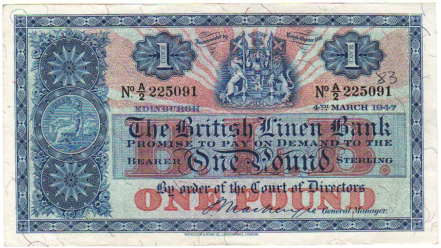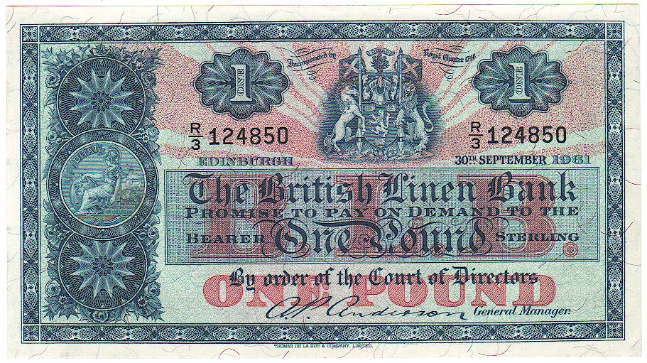 British Linen Bank 1 Pound, Various dates and prefixesSC205c1 PoundVarious dates and prefixes