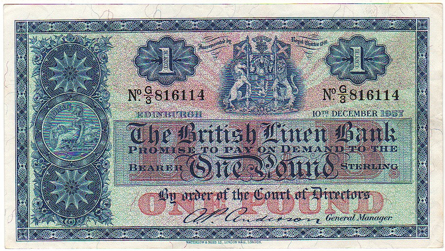 British Linen Bank 1 Pound, 10.12.1957SC205c1 Pound10.12.1957
