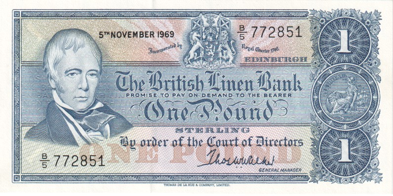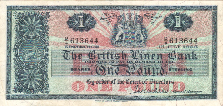 British Linen Bank 1 Pound, Various dates and prefixesSC208b1 PoundVarious dates and prefixes