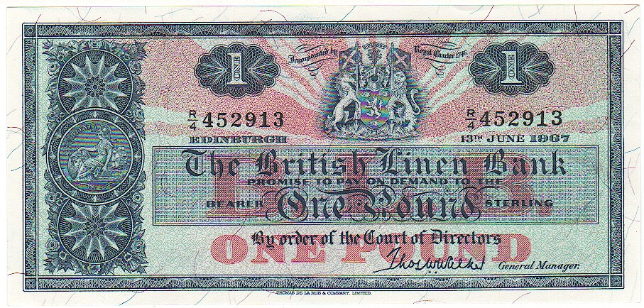 British Linen Bank 1 Pound, 13. 6.1967SC2091 Pound13. 6.1967