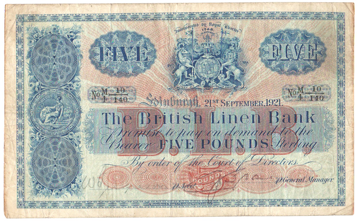 British Linen Bank 5 Pounds, 22. 6.1920SC2125 Pounds22. 6.1920