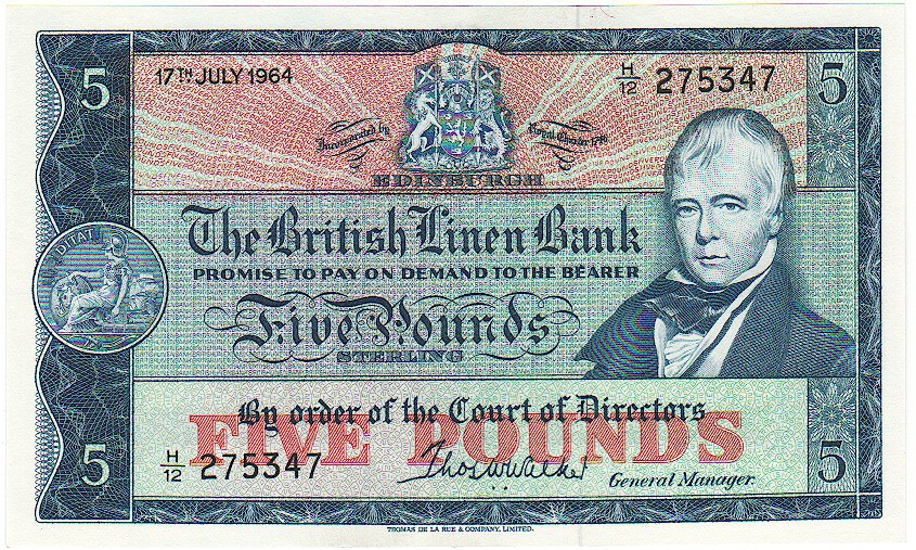 British Linen Bank 5 Pounds, 22. 3.1968SC2175 Pounds22. 3.1968