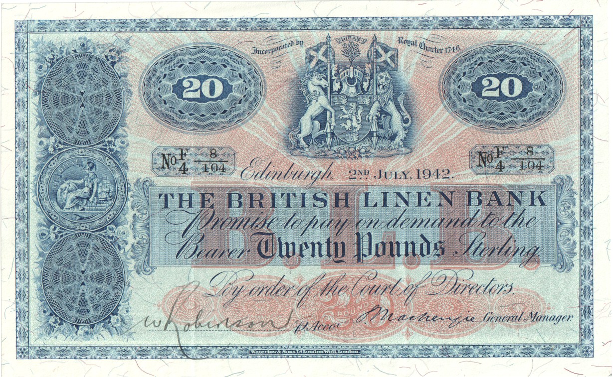 British Linen Bank 20 Pounds,  2. 7.1942SC234c20 Pounds 2. 7.1942