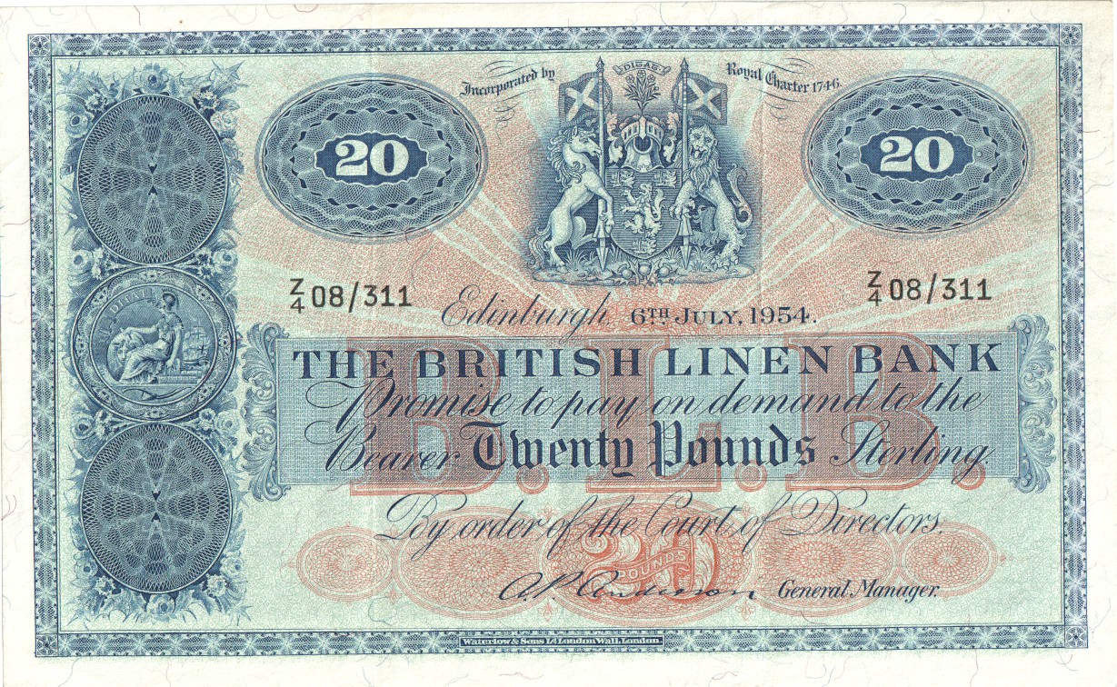 British Linen Bank 20 Pounds,  1. 5.1954SC235b20 Pounds 1. 5.1954