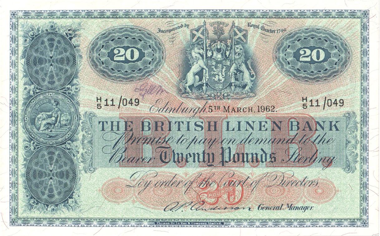 British Linen Bank 20 Pounds,  5. 3.1962SC23620 Pounds 5. 3.1962