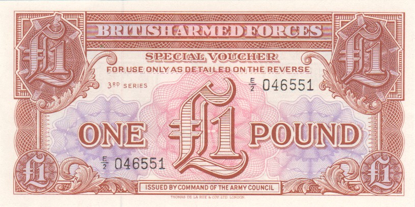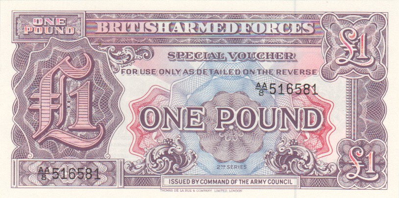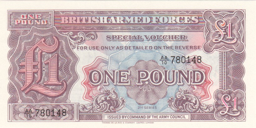 British Military 1 Pound, M22a1 PoundPrefix (1948)UNC£2.00with security thread