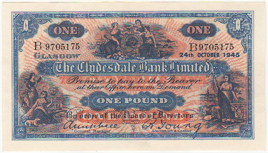 Clydesdale Bank To 1949 1 Pound, 24. 2.1943SC303b1 Pound24. 2.1943