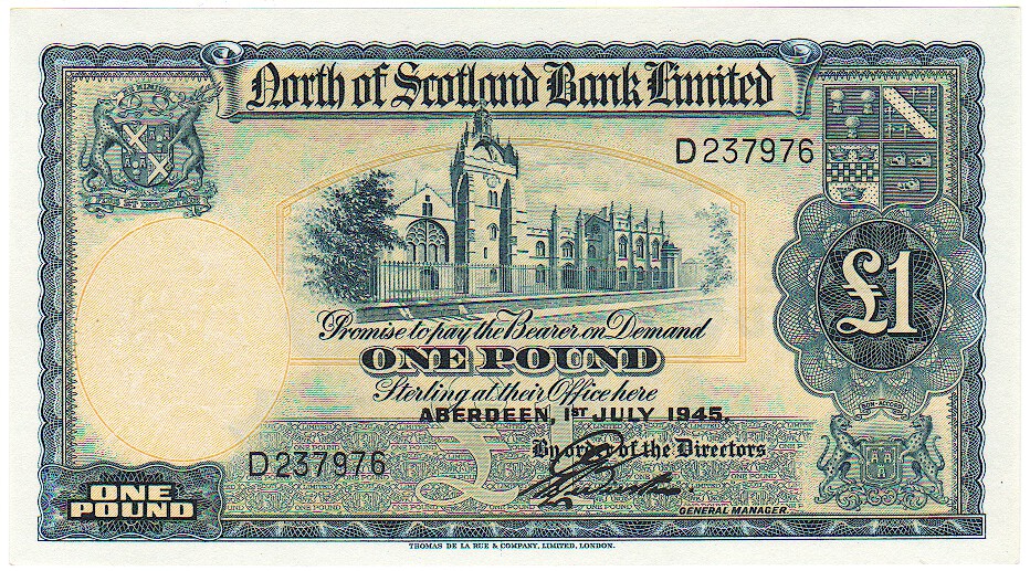 North Of Scotland Bank Ltd 1 Pound,  1. 7.1945SC712b1 Pound 1. 7.1945