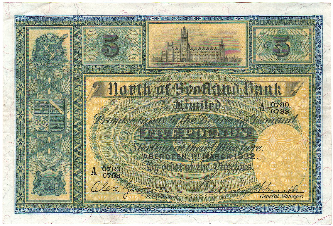 North Of Scotland Bank Ltd 5 Pounds,  1. 3.1928SC714a5 Pounds 1. 3.1928