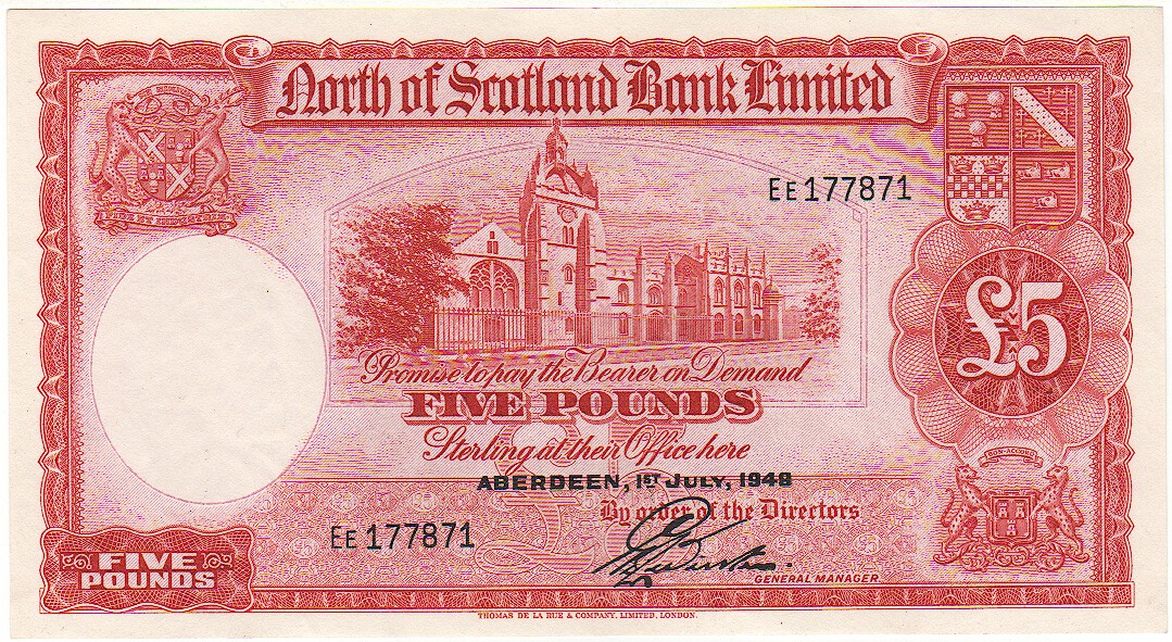 North Of Scotland Bank Ltd 5 Pounds,  1. 7.1949SC715b5 Pounds 1. 7.1949