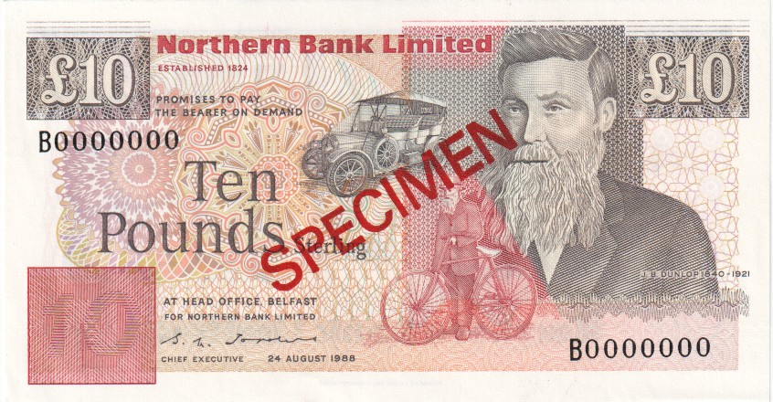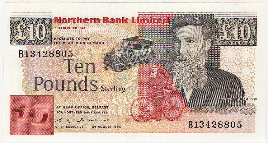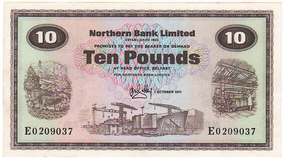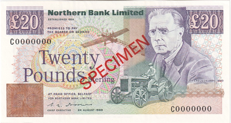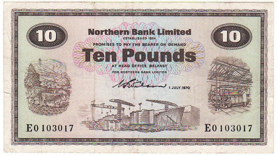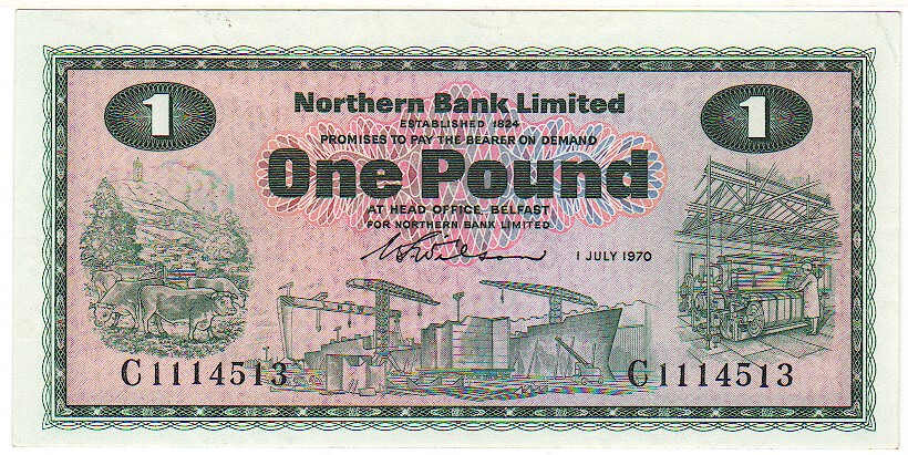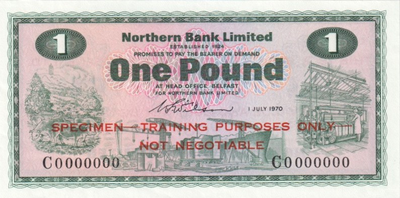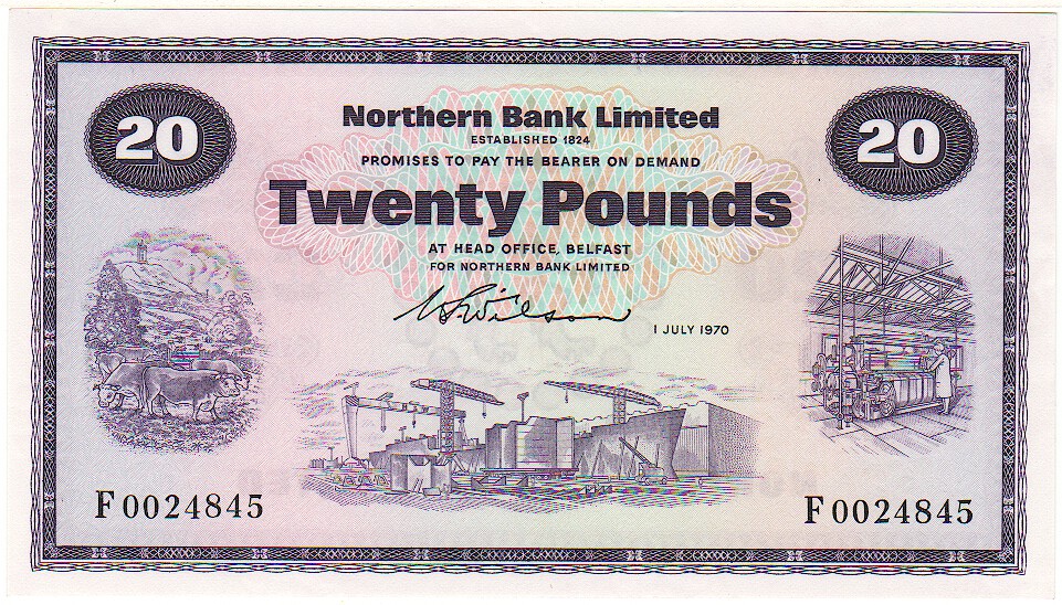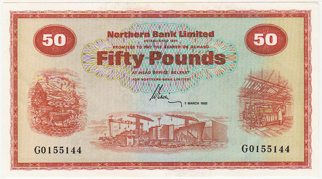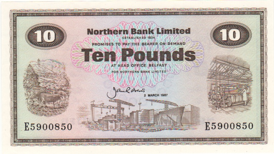 Image BYB ref. One Pound notes NI.601b 1 Pound 6. 5.1929Prefix N-I/B VF+ £95.00 NI.601b 1 Pound 1. 8.1929Prefix N-I/F aUNC £250.00 NI.602a 1 Pound 1. 7.1970Prefix C UNC £35.00 NI.602as 1 Pound 1. 7.1970Prefix C0000000 UNC £11.00 Specimen - Training note NI.602c 1 Pound 1. 8.1978Prefix C UNC £25.00 Five Pound notes NI.613c 5 Pounds 1.11.1943Prefix N-I/T aUNC £220.00 NI.613c 5 Pounds 1.11.1943Prefix N-I/T EF/aUNC £190.00 NI.613c 5 Pounds 1.11.1943Prefix N-I/T EF £160.00 NI.616s 5 Pounds 25.8.1988Prefix A0000000 UNC £140.00 Specimen note NI.617b 5 Pounds 1. 1.2000Prefix Y2K UNC £42.00 NI.617 are polymer notes, the last £5 notes issued by the northern Bank. Ten Pound notes NI.623g 10 Pounds 1.10.1968Prefix N-I/00 UNC £330.00 NI.624a 10 Pounds 1. 7.1970Prefix E F+/VF £55.00 NI.624a 10 Pounds 1. 7.1970Prefix E VF £50.00 Small ink annotation on the front NI.624b 10 Pounds 1.10.1971Prefix E aEF £90.00 NI.624b is a scarce variety with only 100,000 notes printed NI.624c 10 Pounds 1. 1.1975Prefix E UNC £125.00 NI.624c 10 Pounds 1. 1.1976Prefix E UNC £125.00 NI.624d 10 Pounds 1. 4.1982Prefix E aUNC £105.00 NI.624d 10 Pounds 1. 4.1982Prefix E EF £80.00 NI.624e 10 Pounds 2. 3.1987Prefix E aUNC £85.00 NI.624e 10 Pounds 2. 3.1987Prefix E EF £50.00 NI.625a 10 Pounds 24. 8.1990Prefix B aUNC £80.00 NI.625as 10 Pounds 24.8.1988Prefix B0000000 UNC £160.00 Specimen note NI.629 10 Pounds 9.11.2008Prefix GG UNC £40.00 NI.629 10 Pounds 30.11.2011Prefix GH UNC £40.00 Last prefix NI.629 10 Pounds 9.11.2008Prefix YY UNC £60.00 Replacement note NI.629 10 Pounds 9.11.2008Prefix YY VF+ £28.00 Replacement note Twenty Pound notes NI.632a 20 Pounds 1. 7.1970Prefix F UNC £490.00 NI.633a 20 Pounds 24. 8.1993Prefix C aU/UNC £175.00 NI.633as 20 Pounds 24.8.1989Prefix C0000000 UNC £200.00 Specimen note NI.634a 20 Pounds 24. 2.1997Prefix CA UNC £100.00 First prefix NI.634a 20 Pounds 24. 2.1997Prefix CB VF+ £28.00 Small 2mm tear in the top margin NI.636 20 Pounds 6.11.2006Prefix HG UNC £38.00 NI.636 20 Pounds 6.11.2006Prefix HH UNC £38.00 NI.636 20 Pounds 6.11.2006Prefix YY EF/aUNC £70.00 Replacement note NI.636 20 Pounds 6.11.2006Prefix YY VF+ £50.00 Replacement note NI.637 20 Pounds 15. 4.2009Prefix HH UNC £38.00 NI.637 20 Pounds 15. 4.2009Prefix YY EF/aUNC £70.00 Replacement note NI.637 20 Pounds 12. 5.2011Prefix HJ UNC £50.00 Last prefix before Danske Bank Fifty Pound notes NI.643c 50 Pounds 1. 3.1981Prefix G VF+ £240.00 NI.646 50 Pounds 19. 1.2005Prefix YY UNC £240.00 Replacement note One Hundred Pound notes NI.651 100 Pounds 2. 6.1919Prefix No. 5840 EF/aUNC £1,800.00 NI.653a 100 Pounds 1. 7.1970Prefix H VF+ £390.00 NI.656 100 Pounds 19. 1.2005Prefix YY EF £280.00 Replacement note Northern Bank Ltd SPECIMEN SET: NI.Specimen set 5,10, 20, 50, &100 1988, 1989, 1990Prefix A, B, C, D, E. UNC £960.00 NI.616s, NI.625as, NI.633as, NI.644s & NI.654S.