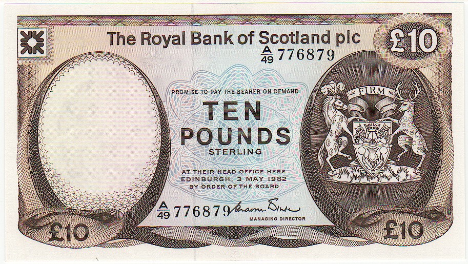 Royal Bank Of Scotland Plc Higher Values 10 Pounds,  5. 1.1983SC851a10 Pounds 5. 1.1983
