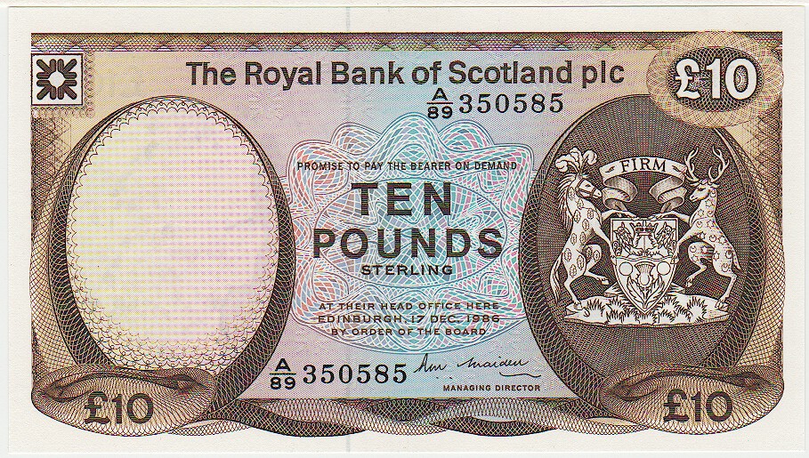 Royal Bank Of Scotland Plc Higher Values 10 Pounds,  17.12.1986SC851b10 Pounds 17.12.1986