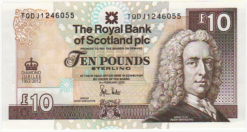 Royal Bank Of Scotland Plc Higher Values 10 Pounds,  6. 2.2012SC85410 Pounds 6. 2.2012