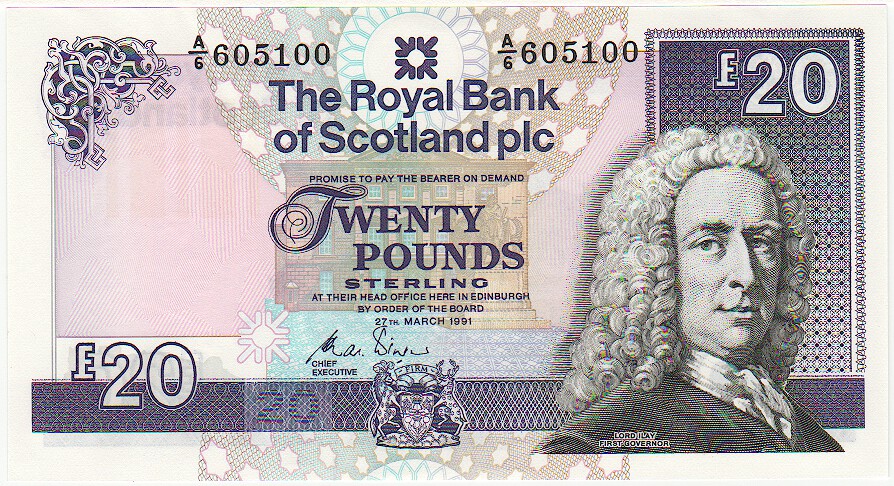 Royal Bank Of Scotland Plc Higher Values 20 Pounds, 27. 3.1991SC863a20 Pounds27. 3.1991