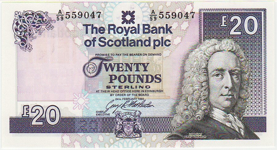 Royal Bank Of Scotland Plc Higher Values 20 Pounds, 24. 2.1993SC863b20 Pounds24. 2.1993