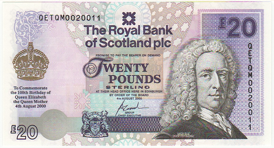 Royal Bank Of Scotland Plc Higher Values 20 Pounds,  4. 8.2000SC86420 Pounds 4. 8.2000