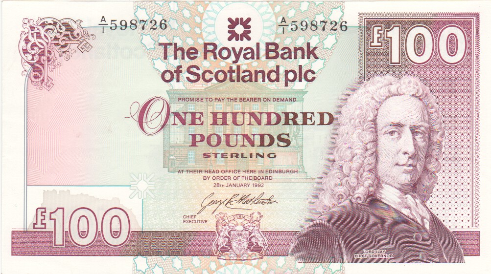 Royal Bank Of Scotland Plc Higher Values 100 Pounds, 23. 3.1994SC882b100 Pounds23. 3.1994