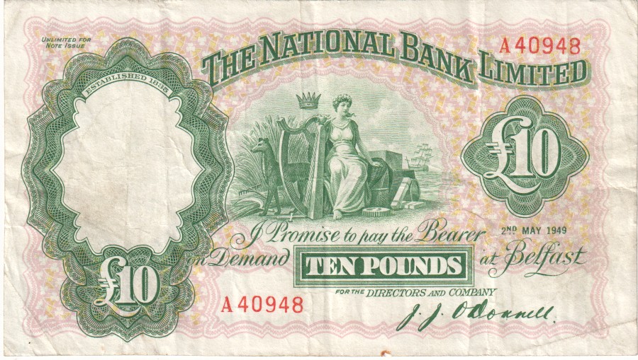 The National Bank Ltd 10 Pound,  2. 5.1949NI.506b10 Pound 2. 5.1949