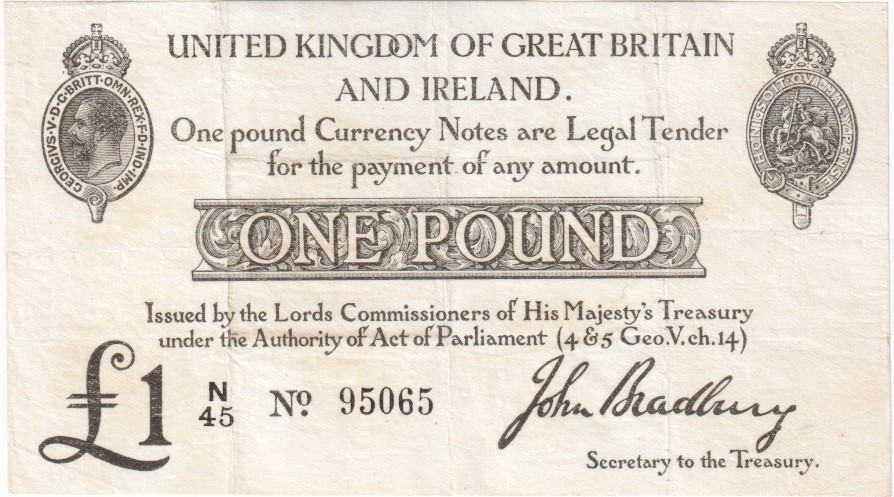 Treasury 1 Pound, from 1914TR12 - D111 Poundfrom 1914