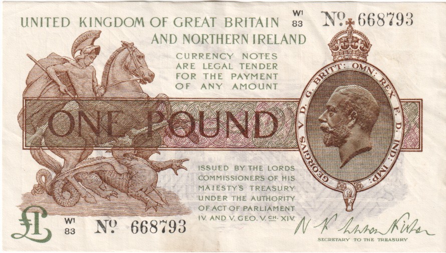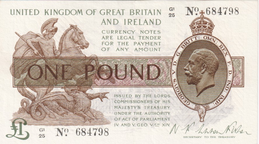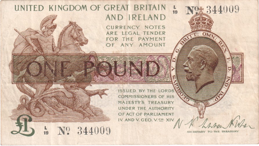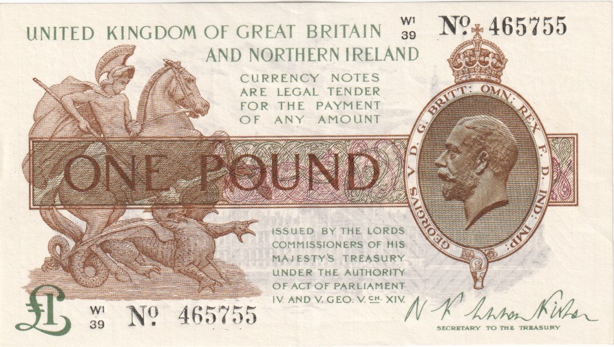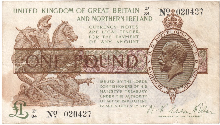 Treasury 1 Pound, from 1927TR19b - W1 391 Poundfrom 1927